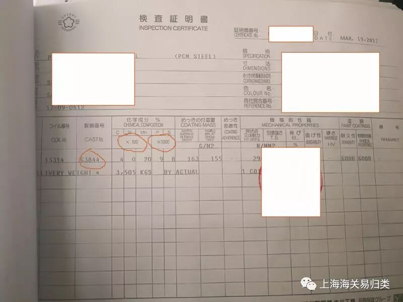 此品质证书显示,该产品锰含量和硫含量,应为0.2%和0.008%,而非20%和8%,这在归类上可是有巨大的差别的。根据72章章注一(六)的规定,锰含量超过1.65%的应视作合金钢。Mn0.2%即按非合金钢归类,而Mn20%则应归入合金钢的税号。